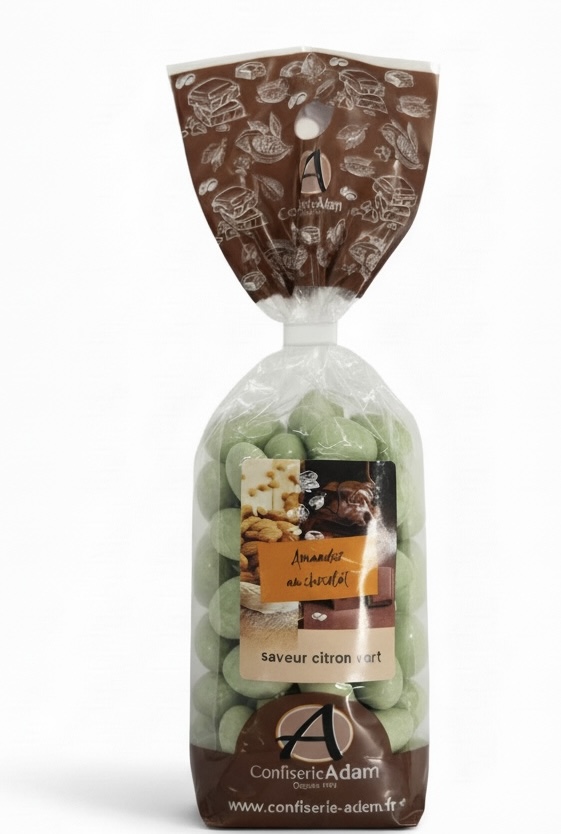 Amande enrobée de chocolat saveur citron vert.