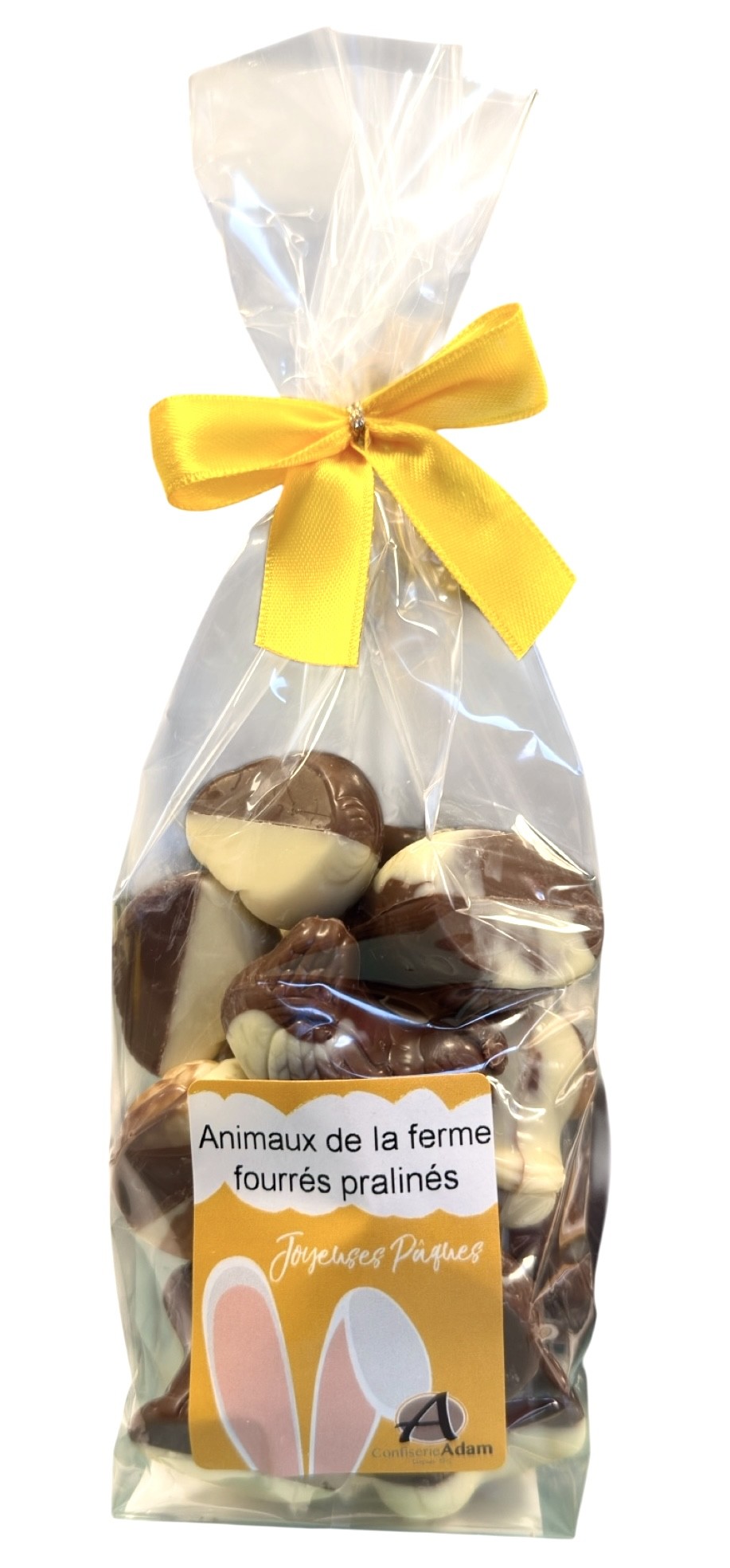 Animaux fourrés praliné : poule, canard et lapin – Hauteur environ 2cm